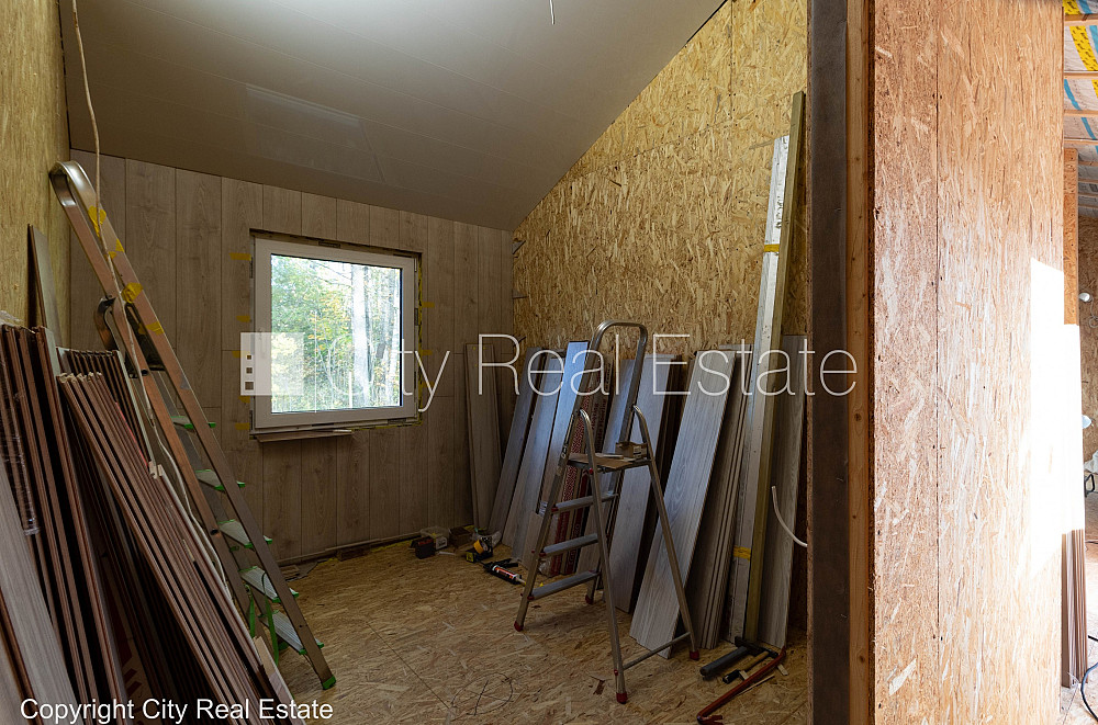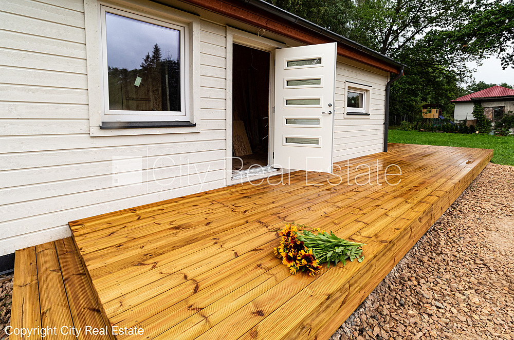 Частный дом, деревянный дом, энергоэффективный дом, места для нескольких машин, терасса 40 м2, количество спален 2 шт., изолированные комнаты 2 шт., студио, кухня объединена с гостинной, два входа, пластиковые стекло-пакетные окна, ламинатный пол, совмещённый санузел, фото сделано во время ремонта, до железной дороги 100 м, находится рядом с лесом, проведено электричество, городская канализация, городская вода, на территории земли несколько строек, хозяйственная постройка, недалеко от главного шоссе, подъездная дорога, возможно приобрести дополнительную землю , зарегестрирована в земельной книге, стратегически выгодное место, до магазина 1 км, до остановки поезда 1 км, о цене возможно договоритсья, CITY REAL ESTATE ID - 517655
