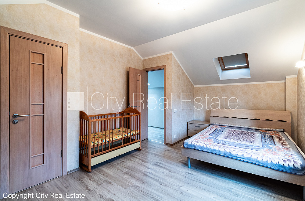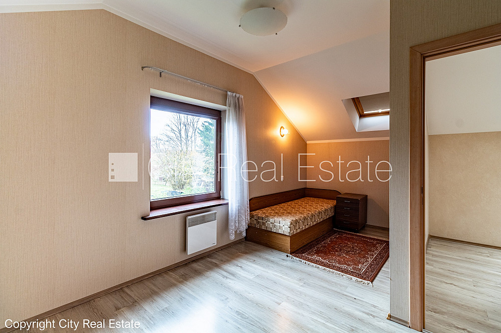Земля в собственности, частный дом, гостевой дом, покрытие крыши из гидроизолированного битума, энергоэффективный дом, благоустроенная озеленённая территория 1505 м2, территория обнесена деревянным забором, въездные ворота оснащены автоматической подъёмной системой, гаражные ворота оснащены автоматической подъёмной системой, места для нескольких машин, балкон, бассеин, турецкая баня, окна выходят в обе стороны дома, система вентиляции воздуха, двухэтажный, студио, кухня объединена с комнатой, гардеробная, холл, подсобка, прачечная, высокие потолки, два входа, камин, электрическое отопление, бойлер для горячей воды, установлены счетчики на потребление горячей воды, фильтры для очистки воды, кондиционер с функцией обогрева, множество санузлов, ванна, душевая кабина, туалет, сдана в эксплуатацию 2007 г., имущество хозяина, до центра города 3 км, до Риги 2 км, до поля для гольфа 15 км, до школы 1,6 км, до детского сада 700 м, до универмага 800 м, до моря 12 км, CITY REAL ESTATE ID - 515705