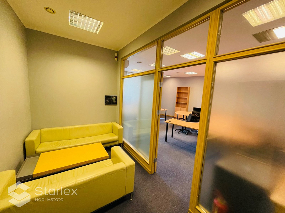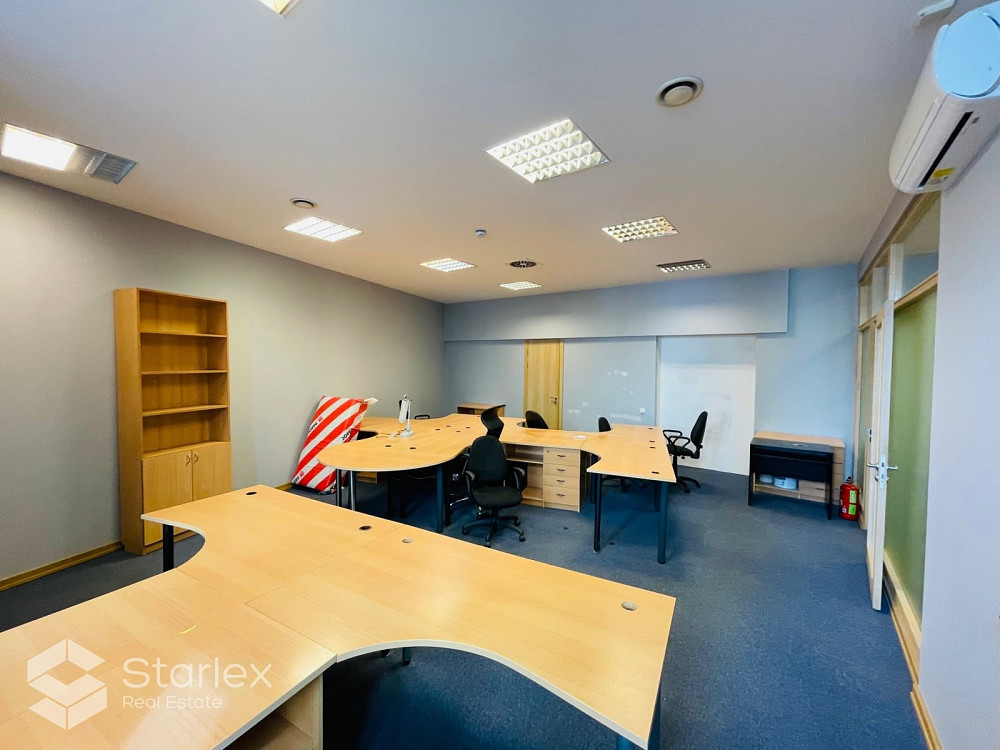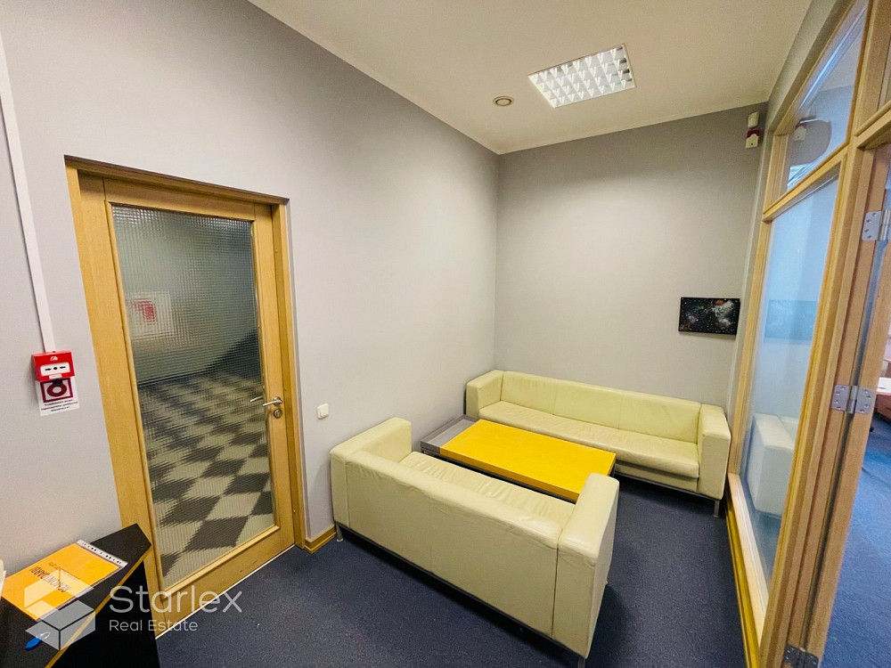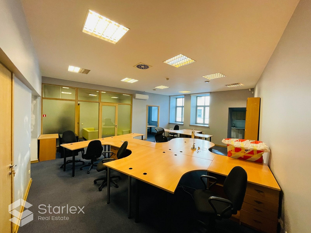 Plānojums: plaša atvērta plānojuma darba telpa, 1 izolēta pārrunu telpa, 1 izolēta 42.40 kv.m. darba telpa, 2 nelielas izolētas telpas bez logiem (noliktavas/zvanu telpas vajadzībām), virtuve, 2 WC.