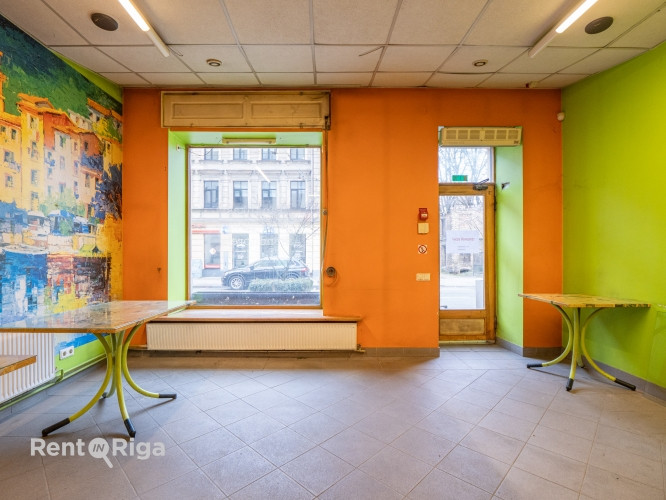 Kafejnīcas telpas ar ventilācijas sistēmu. Telpas sastāv no klientu zāles 30 kvm, virtuves telpas, vairākas palīgtelpas un 2 WC. Telpās ir arī piegādes ieeja no pagalma. Iespēja uz ielas saskaņot vietu terasei. Telpās vēlams remonts, tāpēc pirmie 2 mēneši bez nomas maksas. Papildus var blakus iznomāt biroja telpas.