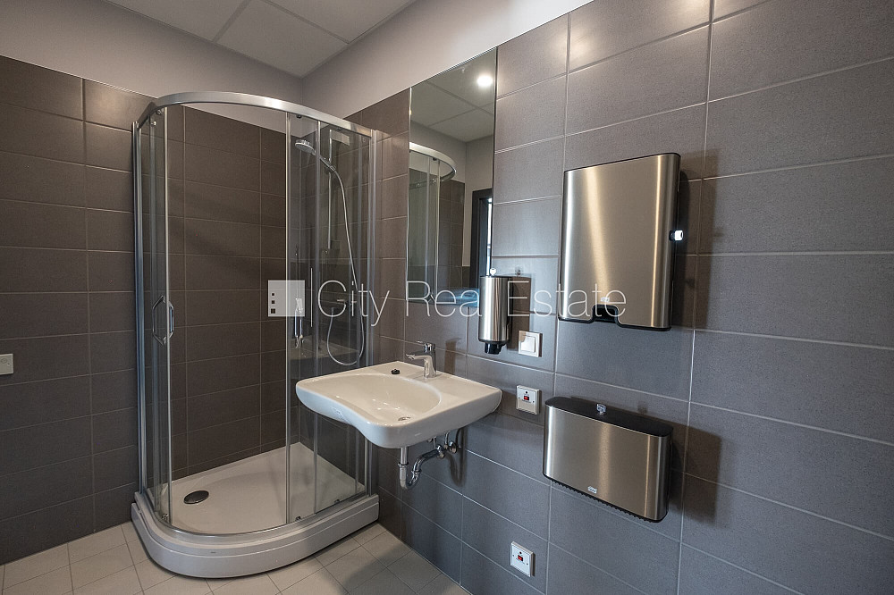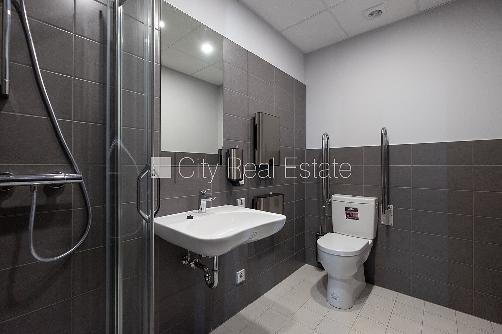 Новостройка, плата за обслуживание одного квадратного метра в месяц 2 EUR, благоустроенная озеленённая территория, въездные ворота оснащены автоматической подъёмной системой, места для нескольких машин, объект охраняет физическая охрана, вход с улицы, лифт, окна выходят в обе стороны дома, высокие потолки, два входа, центральное отопление, счетчики отопления, индивидуальная система учета отопления, полная отделка , покрашенные стены, новая сантехника, ламинатный пол, кафельный пол, oбщий санузел, Офисы класса А, проходные / сквозные помещения, сквозные изолированые помещения, возможность арендовать площадь меньше, возможна аренда большей площади, сигнализация, круглосуточная охрана, освобождена, в проекте ещё доступны комерческие площади 4 шт., сдана в эксплуатацию 2018 г., заключая договор, оплата проиводится за первый и последний месяц аренды, CITY REAL ESTATE ID - 428185