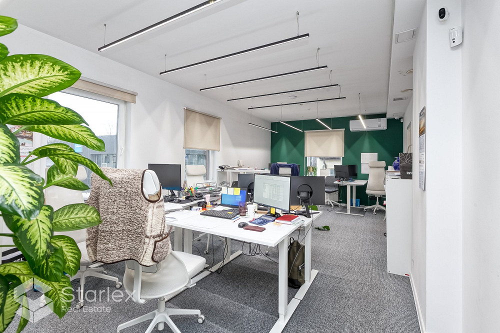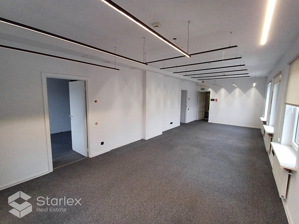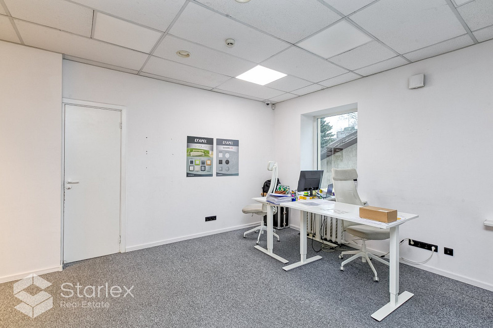 Сдается качественное офисное помещение в районе Вефа. Помещение расположено на 2 этаже здания. Общая площадь 85 м2 Планирование: - 2 рабочих комнаты открытой планировки, - 1 изолированный кабинет, - кухня и гостиная зона, - туалетный блок. Офис свободен - помещение без мебели, представленной на фотографиях. Отопление - Riga Heat (рассчитывается пропорционально арендуемой площади) Возле здания имеется бесплатная парковка, а также есть возможность арендовать парковочное место на территории. Здание расположено на улице Турайда, рядом с мостом ВЭФ и Т/Ц "Домина". Хорошая инфраструктура общественного транспорта (автобусные, троллейбусные и трамвайные остановки в нескольких минутах ходьбы). Арендная плата 8,00 евром2 + коммунальные услуги.
