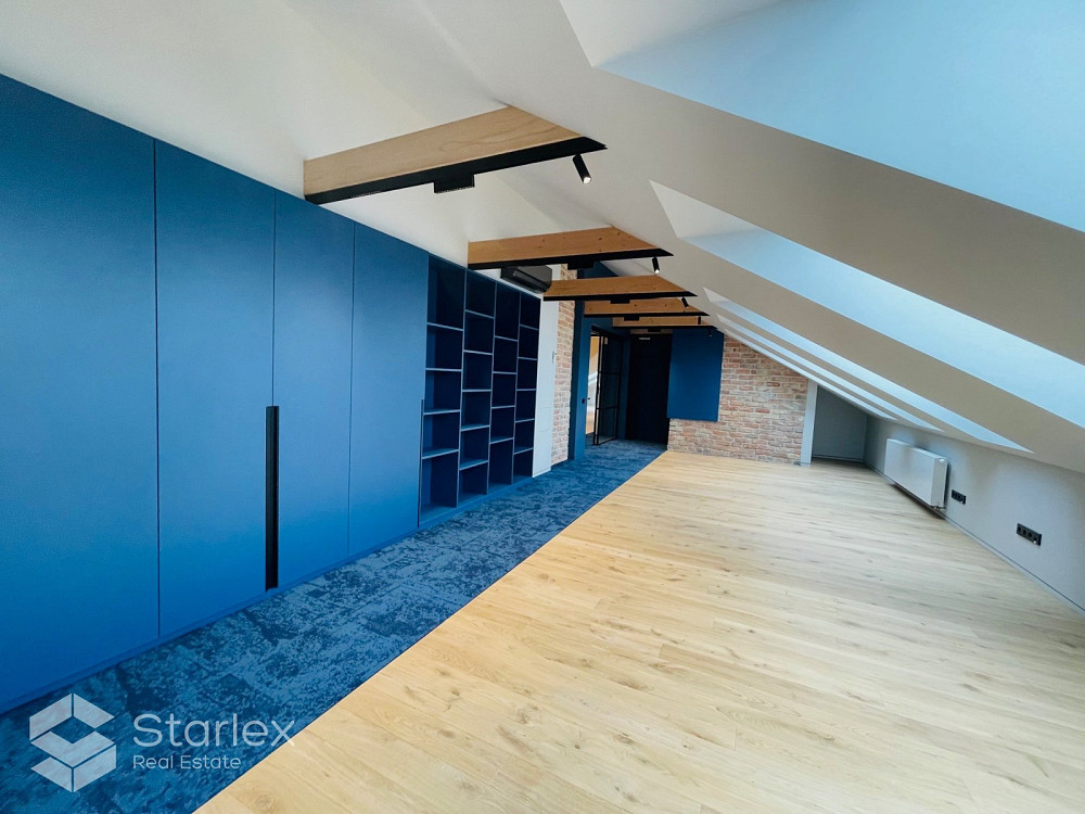 Сдаются в аренду качественные мансардные офисные помещения в отреставрированном здании в центре Риги, на улице Миера 2. Дом построен в 1912 году архитектор Г. фон Тизенхаузен. Доступны офисы с 1-3 квартала 2022 года, п Площадь каждого этажа ~ 250 м2, возможна аренда одного этажа, нескольких этажей вместе или всего здания вместе. Планировка: 5 рабочих зон открытой планировки, кухня, 2 санузла. Во дворе здания имеется около 12 парковочных мест, за дополнительную плату можно договориться по 2 парковочных места на каждом этаже - 100 евро/мес + НДС 21%; дополнительная парковка возле дома, платные парковки на улицах Миера, Шарлотта и Майзницас. Отделка: пол паркет; стены стены из крашеной штукатурки, а также стеклянные перегородки; потолок штукатурка/открытые исторические деревянные балки; освещение профессиональные офисные светильники; санузлы, облицованные плиткой, с высоким уровнем отделки. В каждом рабочем помещении будет предусмотрено кондиционирование воздуха (летом для охлаждения воздуха, зимой для дополнительного подогрева воздуха при необходимости). Недвижимость будет управляться профессионально. Платежи: - арендная плата 12 евро/м2 + НДС 21%. - плата за управление 1,5 евро/м2 + НДС 21%. - коммунальные платежи (вода, электричество, отопление, вывоз мусора). Налог на недвижимость включен в арендную плату. Рассматриваются только долгосрочные договоры аренды. В районе хорошо развита инфраструктура общественного транспорта все возможные троллейбусные и автобусные маршруты находятся в 1 минуте ходьбы, также рядом со зданием находится трамвайная остановка.