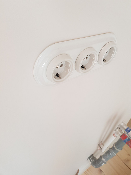 Услуги электрика и электромонтажные работы в Риге. Установка и подключение светильников, люстр, ламп, прожекторов. Замена ремонт розеток, выключателей, автоматов. Монтаж новой проводки, по любому проекту. Аварийный ремонт. Цена - работа + материалы. Рига.