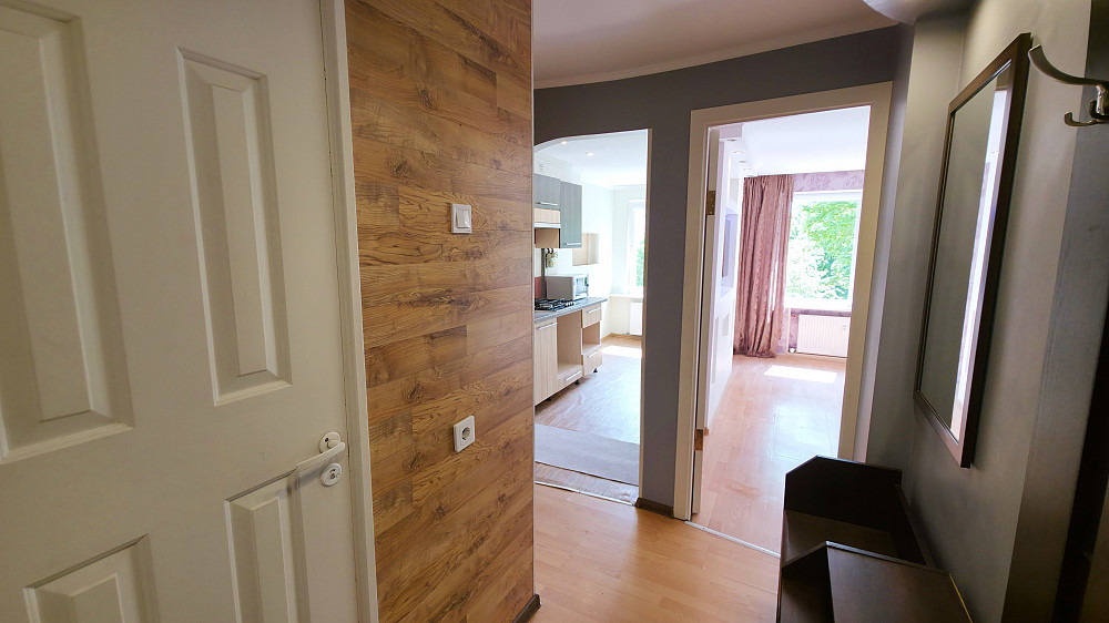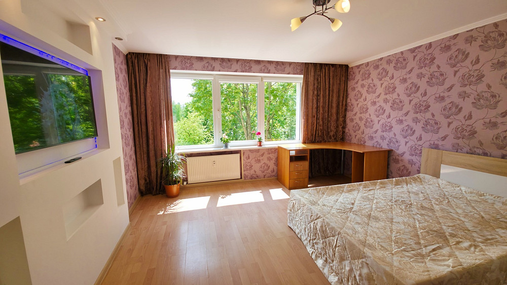 + Skaists skats pa logiem – nav ēku tieši pretim logiem; Saule visas dienas garumā padara dzīvokli gaišu un siltu (dienvidu puse);