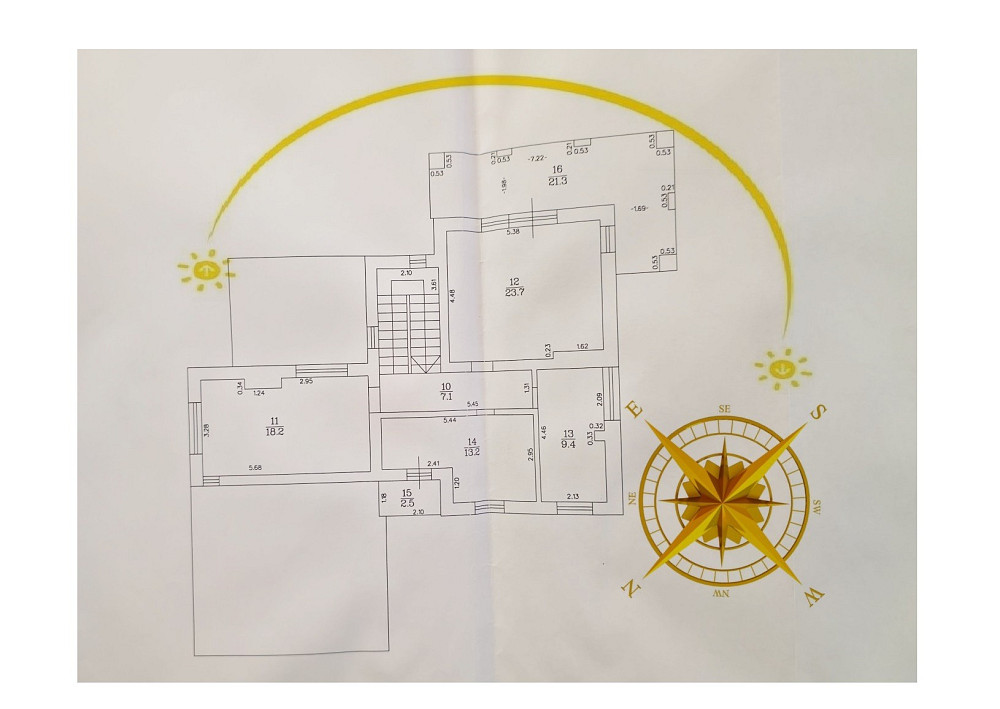 + pirmais stāvs: vējtveris, virtuve ar ēdamzonu, viesistaba ar kamīnu, garderobe, apvienota ar tualeti dušas telpa, katlu telpa, garāža, terase ar izeju no trim telpām; Ārā: četras bruģētas vietas auto novietošanai pie mājas, instrumentu šķūnis;